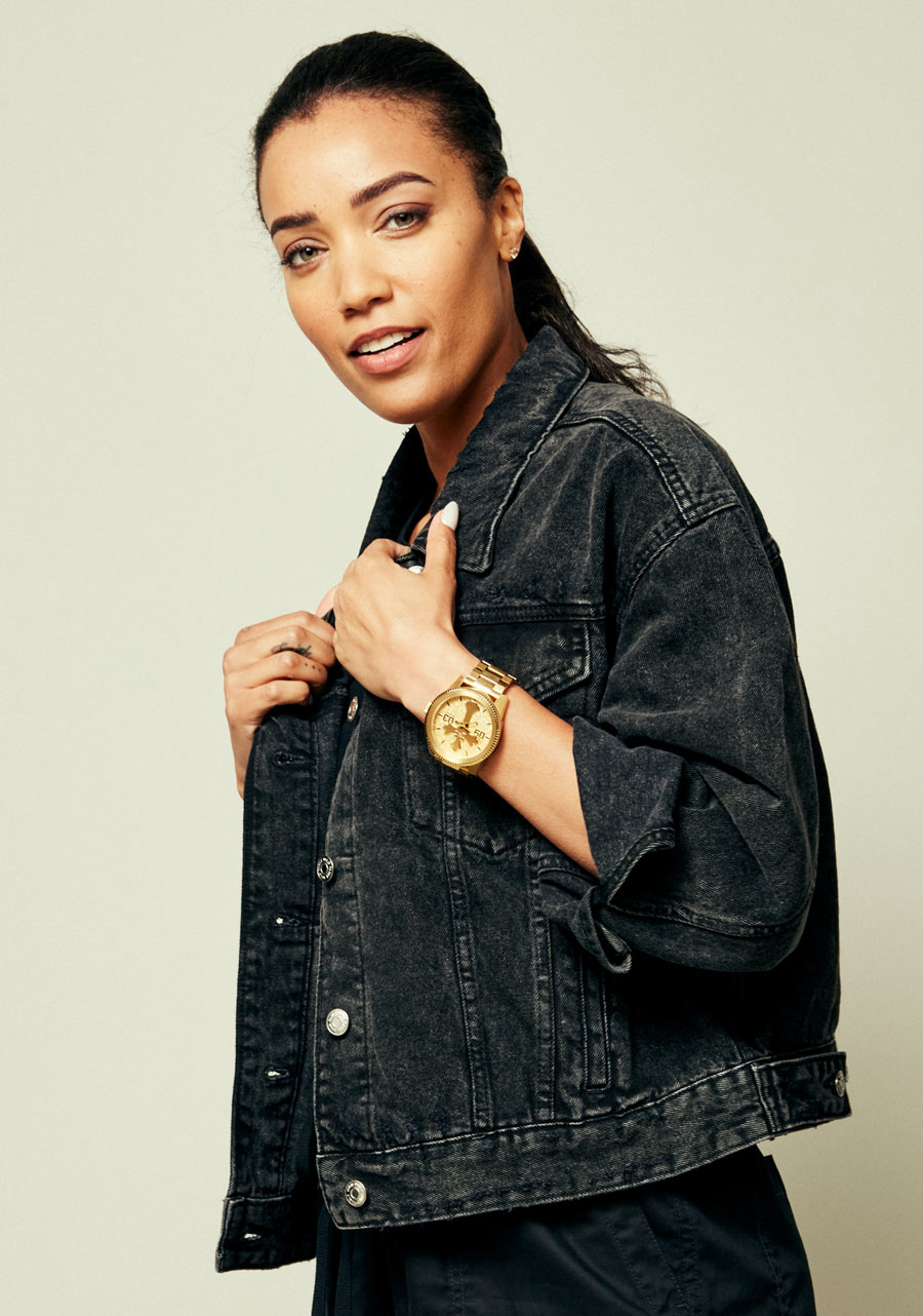 The Corporal watch reflects boldness and ambition, with a striking design two-tone gold on gold band that commands attention. Emblazoned with signature iconography and custom etched bezel this watch symbolizes a commitment to authenticity and staying true to oneself.