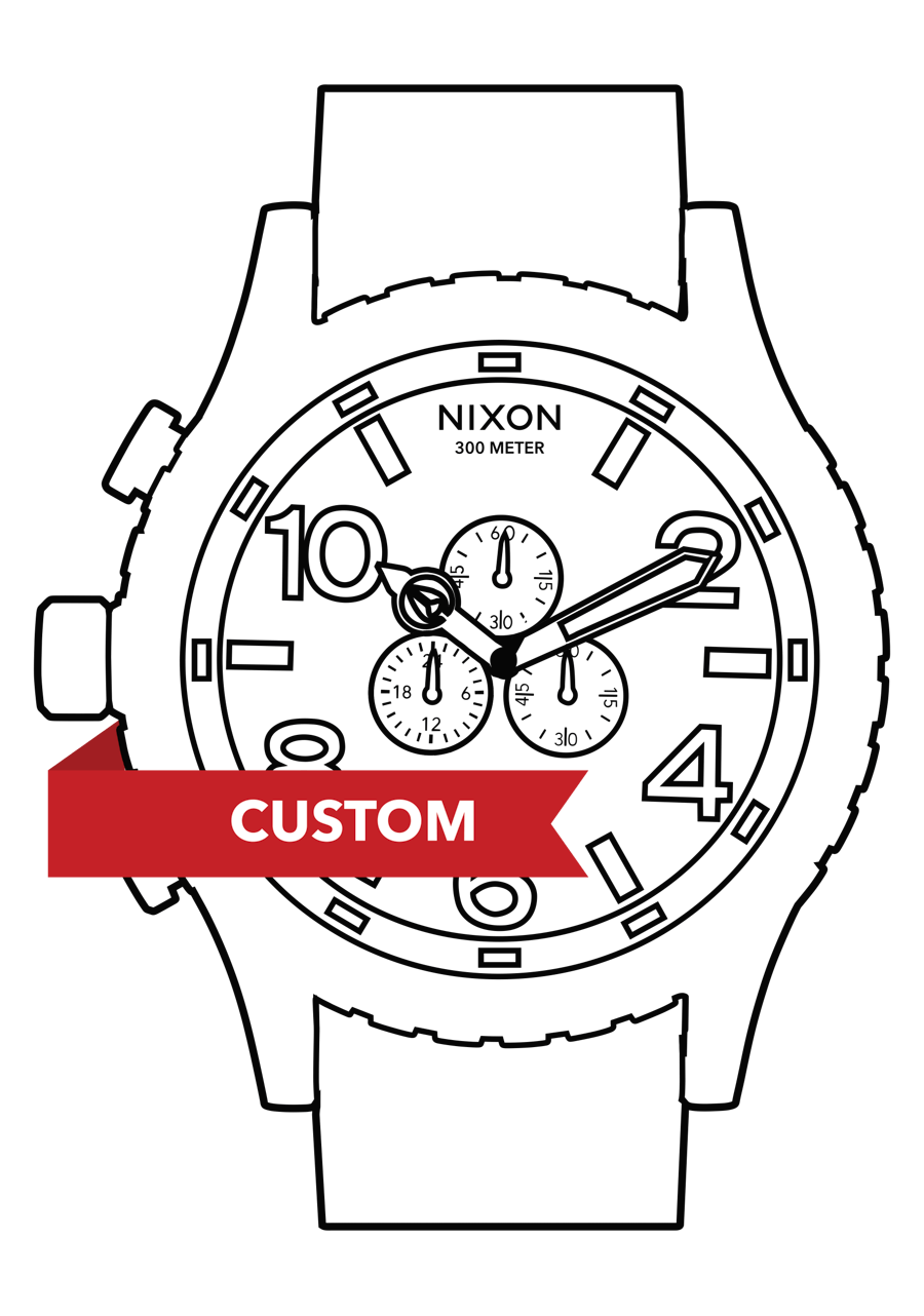 51 mm, 300 meter/30 ATM custom solid stainless steel, solid stainless steel or handmade acetate unidirectional rotating bezel with countdown timer, hardened mineral crystal, screw down crown and pushers, stainless steel screw down caseback and screw pin lugs.
