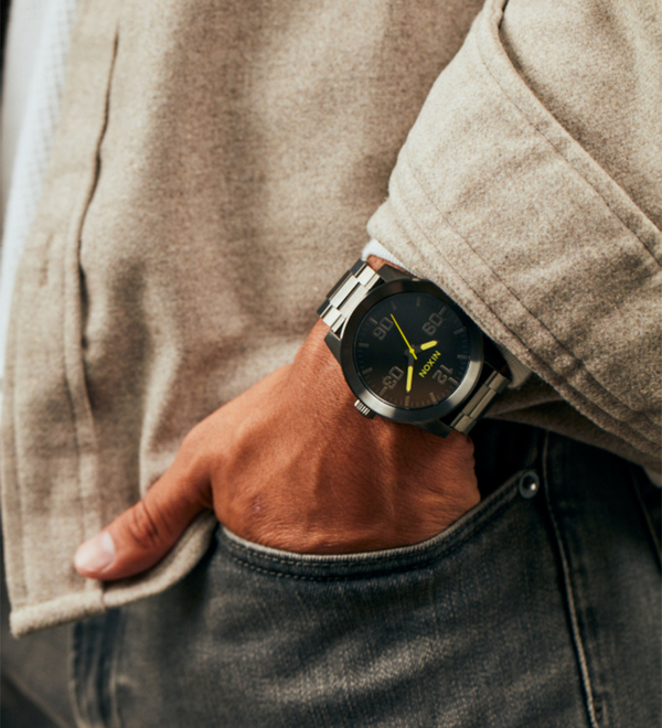 The Nixon Corporal watch uses a Miyota Japanese quartz 3-hand movement.