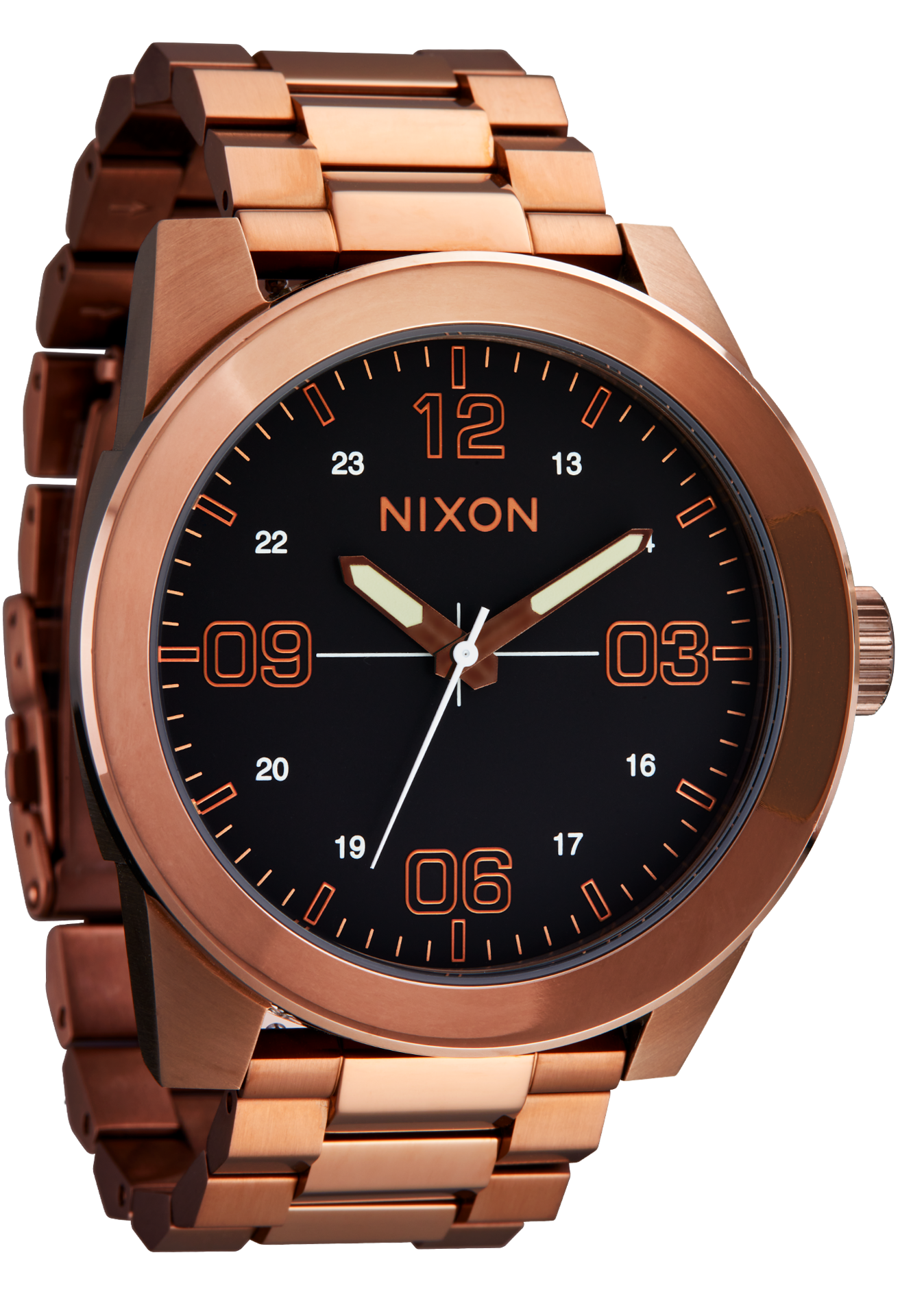 Indulge yourself with a collection so bold and smooth, it'll leave you wanting seconds. We took the colors of our favorite indulgences and covered this collection all the way through. Bold coated stainless steel construction surrounds the Corporal, Time Teller Solar and Time Teller Medium while smooth leather bands hold on to the Station Chrono and 51-30 Chrono. We already know you have style, now let's add some flavor. Kick back and enjoy our most flavorful collection yet.