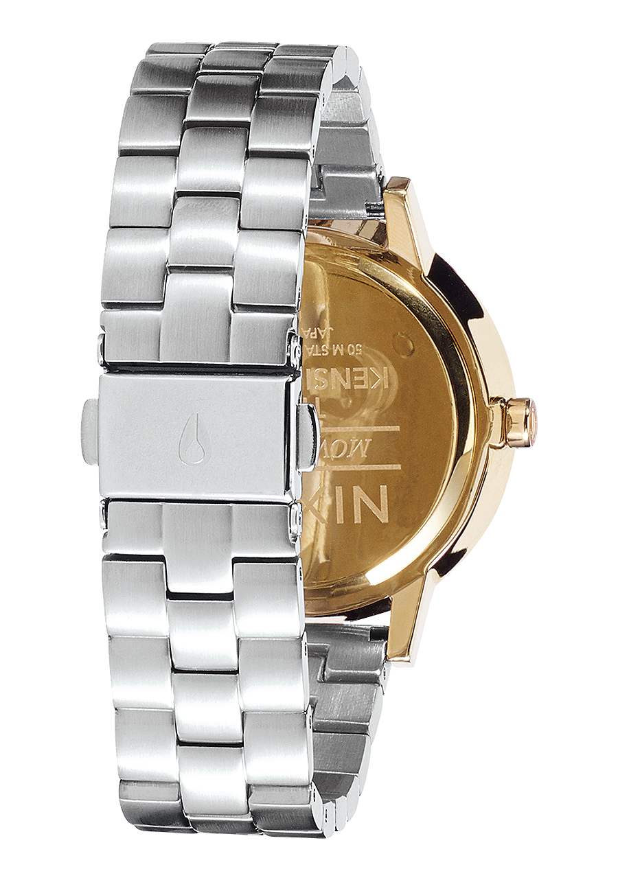 The Nixon Kensington, like other Nixon watches, includes a limited warranty for defects in materials and workmanship for two years after purchase from an authorized dealer. This warranty covers issues related to the watch's construction but does not cover normal wear and tear, batteries, or misuse such as opening the caseback or exposing the watch to moisture without proper sealing.
