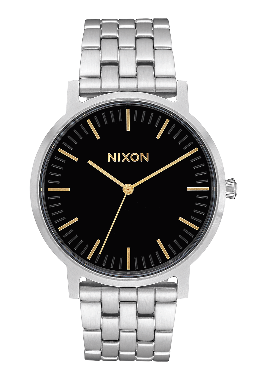 The Nixon Porter features a custom stainless steel case and bracelet. The watch is designed for everyday durability, with a hardened mineral crystal, double gasket crown, and screw-down stainless steel caseback for enhanced protection.