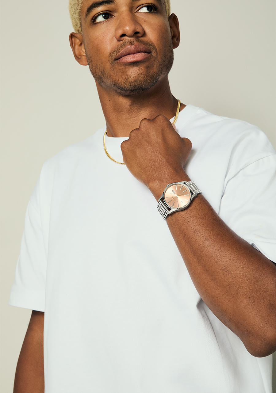 Applied indices provide depth and dimension to the dial of this classic everyday watch.