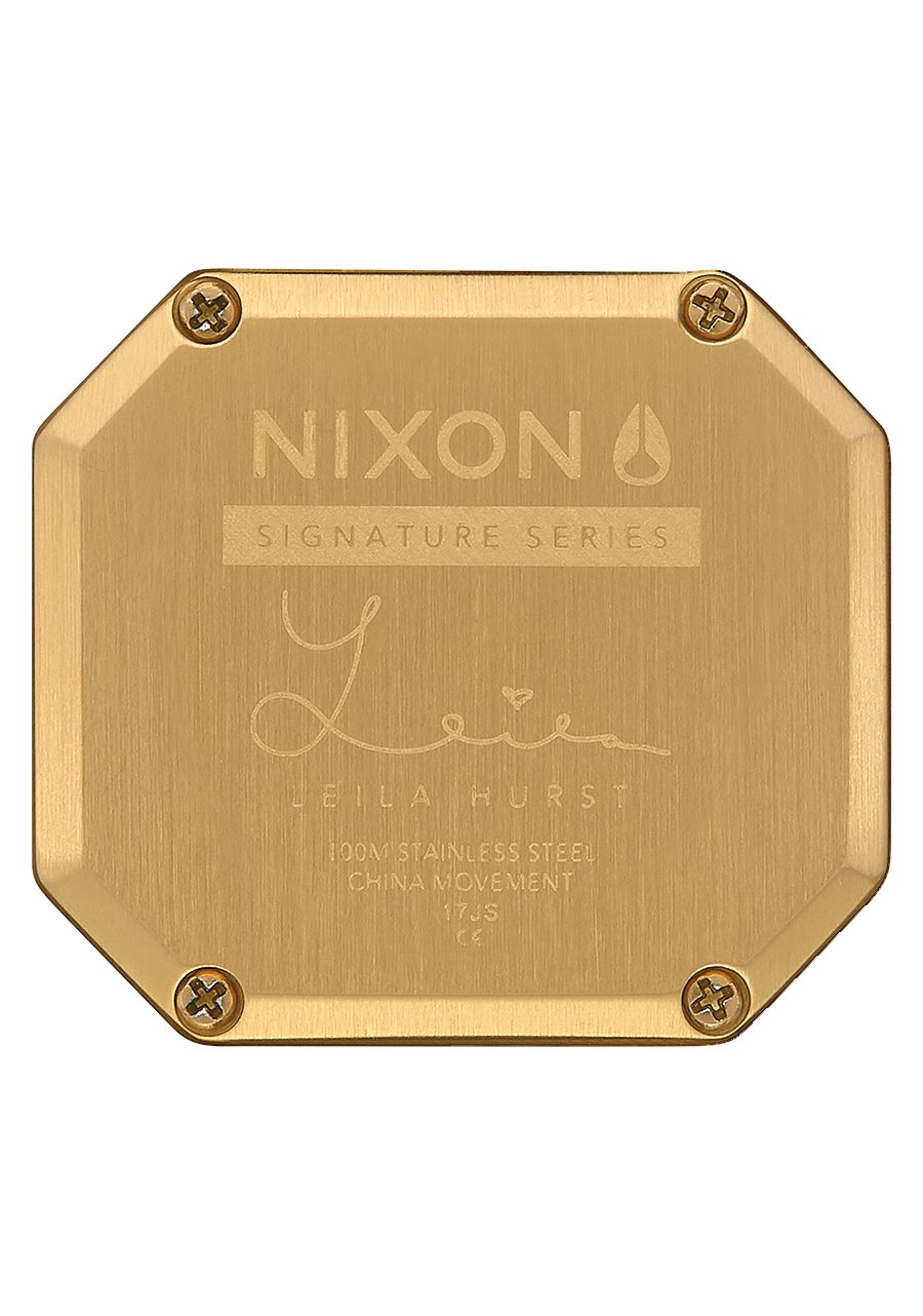 The Nixon Siren Stainless Steel uses a custom stainless steel case with stainless steel screw bars and pushers, and a custom injection molded ultra-soft silicone band with a solid stainless steel buckle and screw bars. The watch is water resistant up to 100 meters / 10 ATM, making it highly durable for water and sports use.