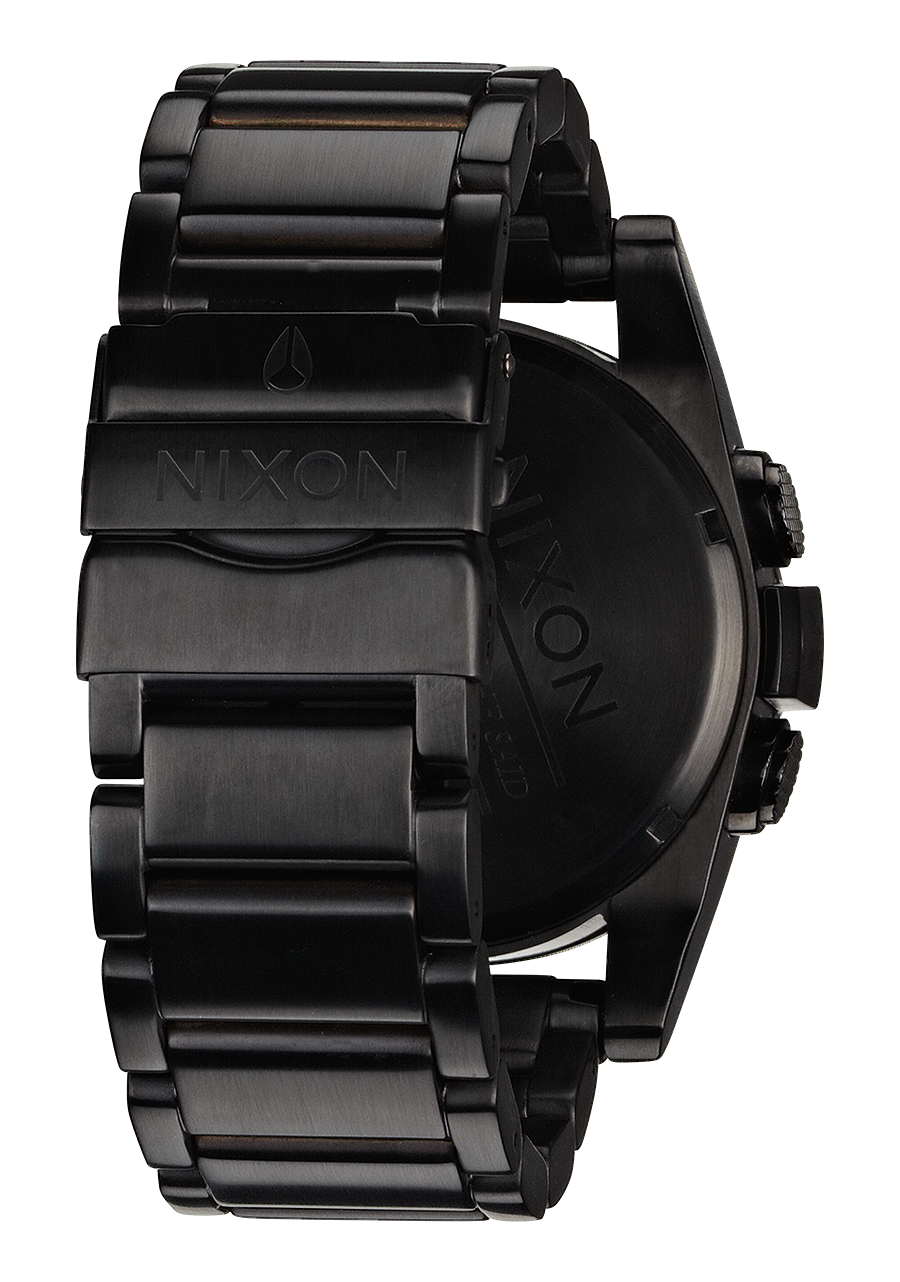 44.5mm, 100 meter/10 ATM custom solid stainless steel case, fixed solid stainless steel bezel, hardened mineral crystal, double gasket stainless steel pushers, stainless steel screw down caseback and screw pin lugs.