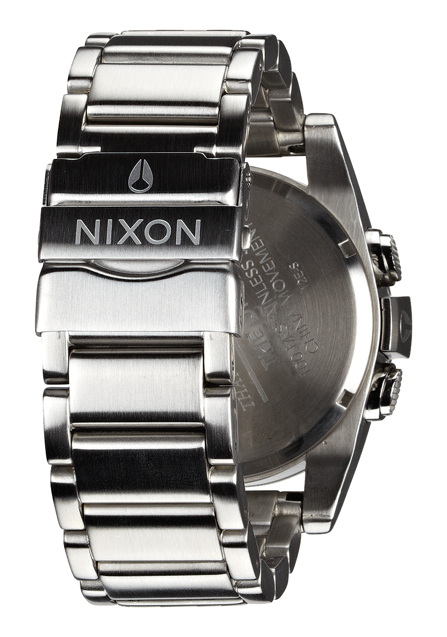 44.5mm, 100 meter/10 ATM custom solid stainless steel case, fixed solid stainless steel bezel, hardened mineral crystal, double gasket stainless steel pushers, stainless steel screw down caseback and screw pin lugs.